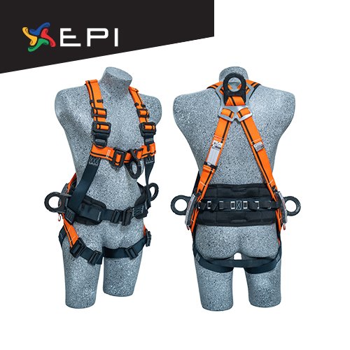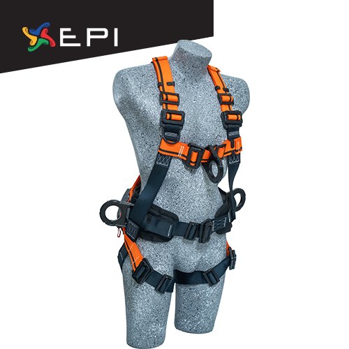 Arnés dieléctrico certificado de 4 argollas modelo en H con faja lumbar, ideal para realizar actividades de posicionamiento, Ascenso, descenso y detención de caídas.